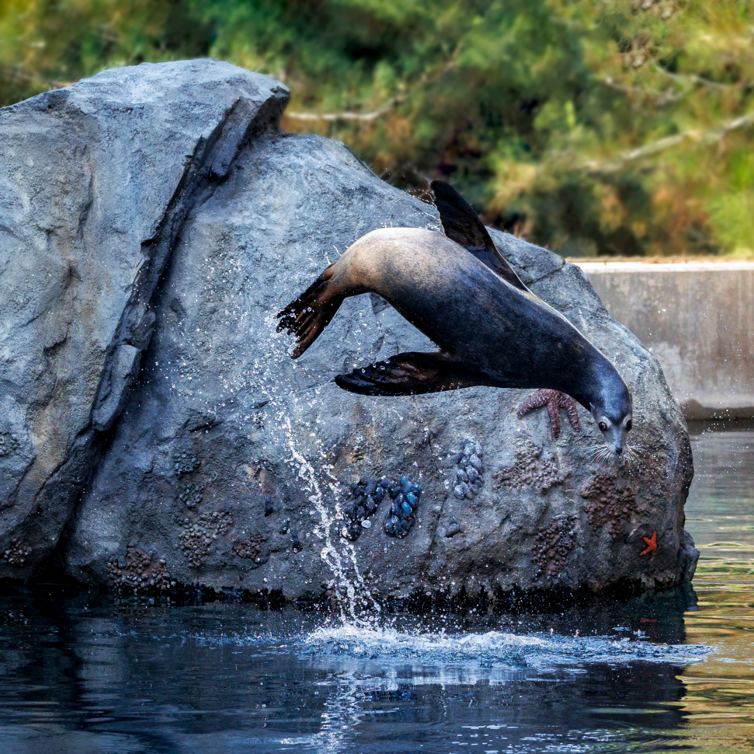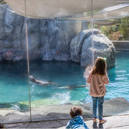 Modeled after Point Lobos, California, Sea Lion Cove is one of the country’s most unique and beautiful sea lion exhibits. You’ll immediately be transported to the California Coast with the sound of crashing waves, salty sea air, barking sea lions and harbor seals. Gaze in wonder at these amazing animals from four unique vantage points including the 35-foot underwater viewing window where you can watch the seals and sea lions glide gracefully beneath the water. Sea Lion Cove was made possible by the support of the community through Measure Z.