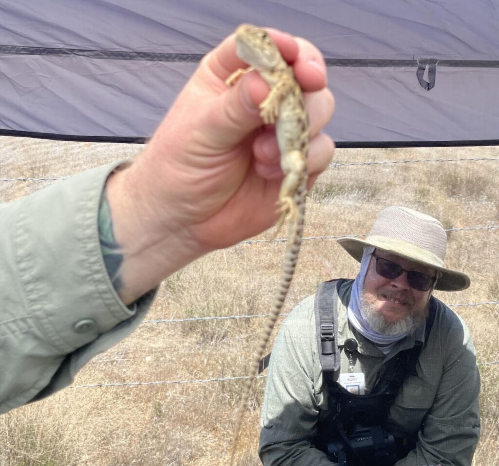 This experience took a lot of pre-planning teamwork and a leap of faith. Could we get 50 students on a charter bus up the hill? Would it be too hot/cold? Would the students be impressed with the area and the work? All the planning paid off and the students had an incredible immersive experience. The Education staff led them on nature walks, a plant identification activity, and nature journaling. Students learned firsthand about the burrows and dens the lizards and other desert animals use for shelter, and what plants were native and which were not. They thought about how invasive plants might harm the lizards homes. They then went up the hill to track the Blunt-nosed Leopard Lizards with Zoo scientists.