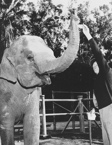 In 1949 Nosey the elephant was purchased with the help of the Fresno Rotary Club and donations from thousands of school children. A Name-the-Elephant contest was held in anticipation of the new arrival. Thousands of school children sent in their pennies, nickels, and dimes. On September 11, 1949 a colorful “49er’s” Days Rodeo Parade was completely dominated by the young elephant named Nosey.