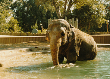 Nosey, the elephant, had her old asphalt exhibit replaced in 1982 with a large modern dirt exhibit (for about $950,000), with a waterfall, pool, and interior night quarters containing remote controlled hydraulic doors. Two other female elephants and one male elephant joined her that year. It was the first time in 33 years that she had seen another of her species, and it took her six months before she went into the pool.